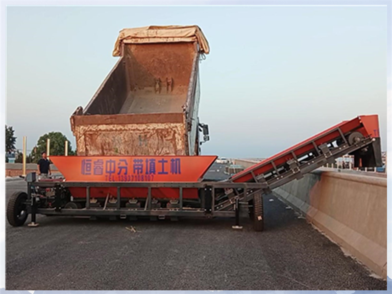 恒睿中分帶填土機(jī)的側(cè)向輸料設(shè)計(jì)是其環(huán)保性能的主要體現(xiàn)。傳統(tǒng)人工填土過程中,物料落地現(xiàn)象普遍,不僅污染路面,還需要額外的清理工作,既耗時(shí)又不符合環(huán)保要求。而恒睿中分帶填土機(jī)通過側(cè)向輸料,將物料直接輸送至中分帶內(nèi),從根本上避免了物料落地污染路面的問題,減少了路面清理成本與環(huán)保風(fēng)險(xiǎn),嚴(yán)格符合綠色施工的各項(xiàng)標(biāo)準(zhǔn)。這一設(shè)計(jì)在公路改擴(kuò)建工程中更為重要,有效保護(hù)了原有路面,為后續(xù)施工奠定了良好基礎(chǔ)。