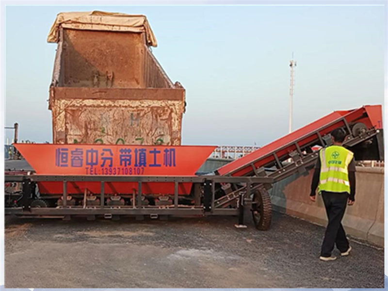 恒睿中分帶填土機(jī)具備與土方車同步行走布料的核心功能,這一設(shè)計(jì)打破了傳統(tǒng)人工填土與土方車配合脫節(jié)的問題。在作業(yè)過程中,土方車運(yùn)輸物料時(shí),恒睿中分帶填土機(jī)可實(shí)時(shí)跟隨,實(shí)現(xiàn)物料的即時(shí)輸送與填土操作,無需人工反復(fù)轉(zhuǎn)運(yùn)物料,大幅減少中間環(huán)節(jié)的時(shí)間浪費(fèi)。同時(shí),設(shè)備采用側(cè)向輸料設(shè)計(jì),能有效避免物料落地污染路面,既省去了后續(xù)路面清理的工作量,又符合綠色施工理念,讓施工過程更環(huán)保、作業(yè)節(jié)奏更緊湊。