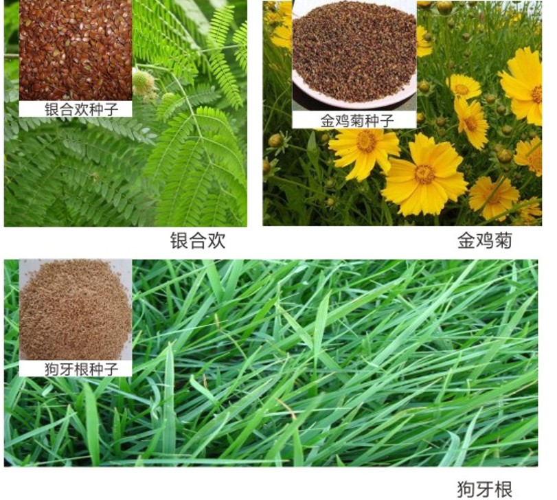 用于水土保持的草種均需采用混播,這樣不但可以增加物種的多樣性,彌補(bǔ)單一草種的不足,而且能夠長(zhǎng)期保持植被群落的穩(wěn)定性。例如:以多年生黑麥草、高羊茅、狗牙根和白三葉組成的混合草種中,黑麥草能夠在較短時(shí)間內(nèi)覆蓋地面,從而阻止雜草生長(zhǎng)和防止水土流失,為其他草種成功建植提供良好的環(huán)境條件。一兩年后,黑麥草逐漸退化,而高羊茅、狗牙根和白三葉則在黑麥草的保護(hù)下得以持續(xù)生長(zhǎng)。